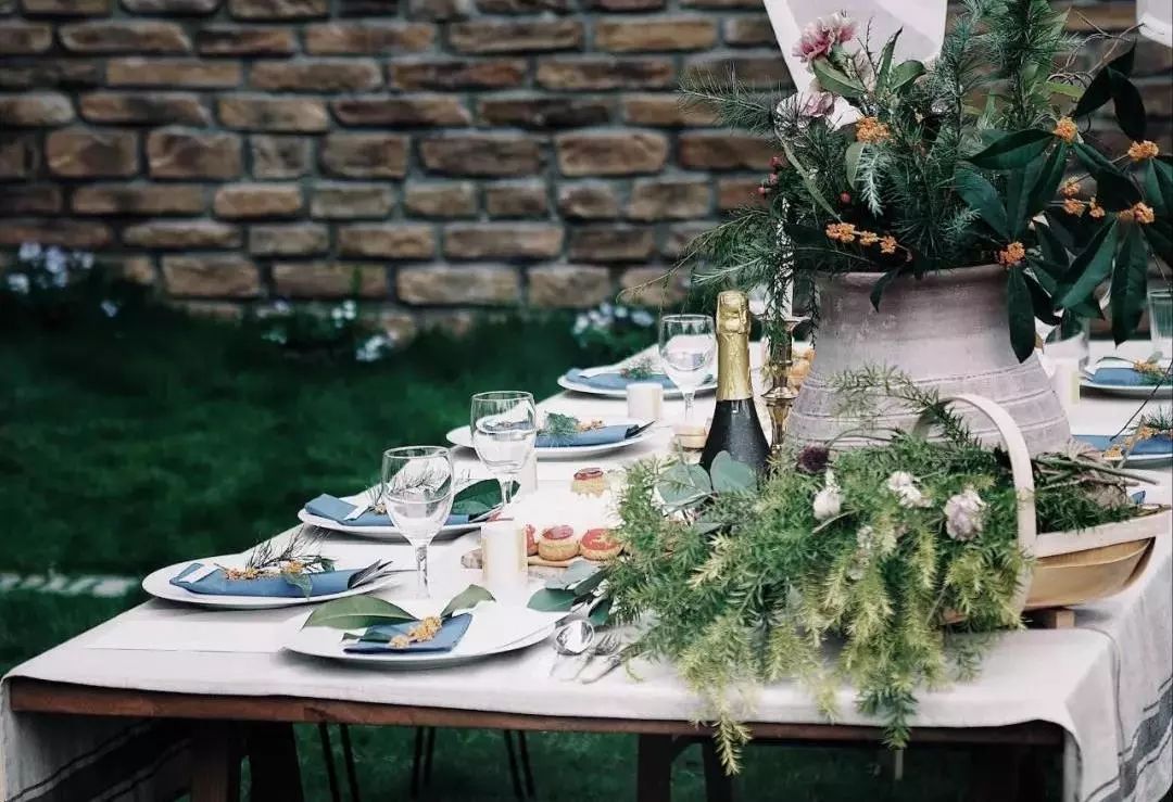 把一楼客厅的长桌搬出来简单布置一下