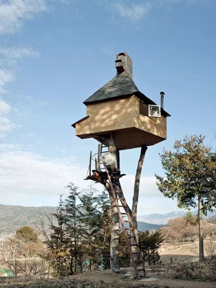 当你买不起房的时候就想各种办法弄钱倒腾但日本这位建筑师藤森照信做了很多奇奇怪怪的房子不是盖在树上,就是漂在空中或者浮在水里总之是比你还折腾说起这些“脑洞大开”的建筑他说是因为自己的同僚们像安藤忠雄、伊东丰雄都把各种建筑设计尽了搞得他没饭吃只能做些不一样的东西喽藤森照信两个著名建筑高过庵和飞天泥巴船