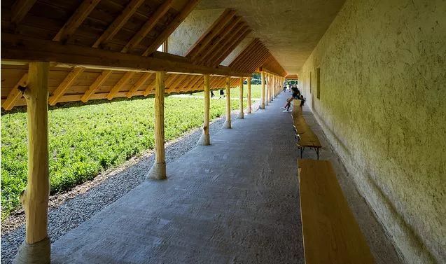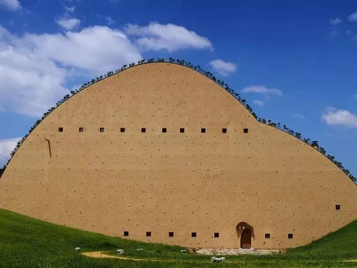 远远看去,“草根屋”似乎和后面的山脉连为一体