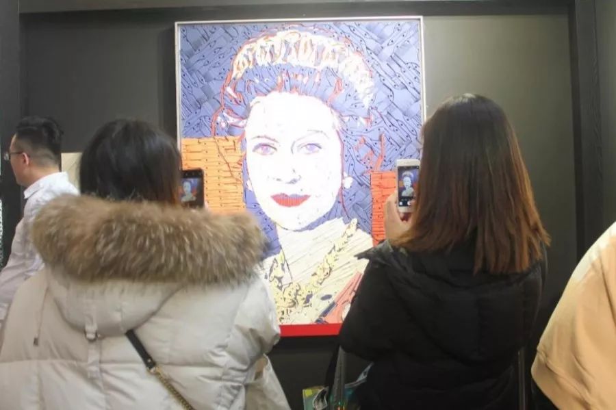 Dominic Myland携镇店艺术品,由艺术家Finn Stone与Mylands共同打造的伊丽莎白女王画像,吸引了众多观众的驻足并拍照留念,意外的成为了设计展的网红背景墙。