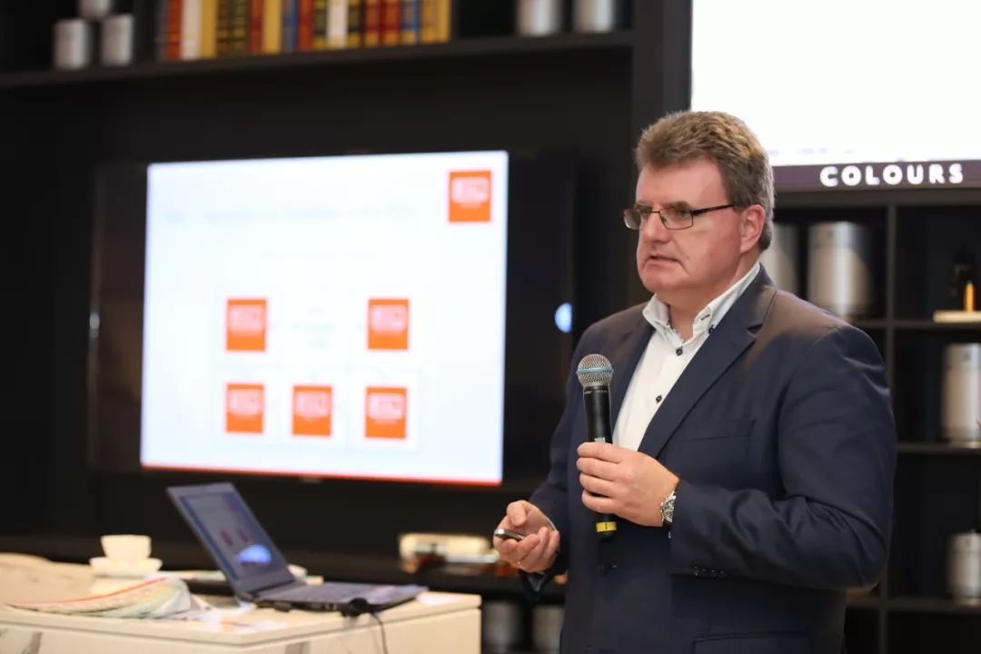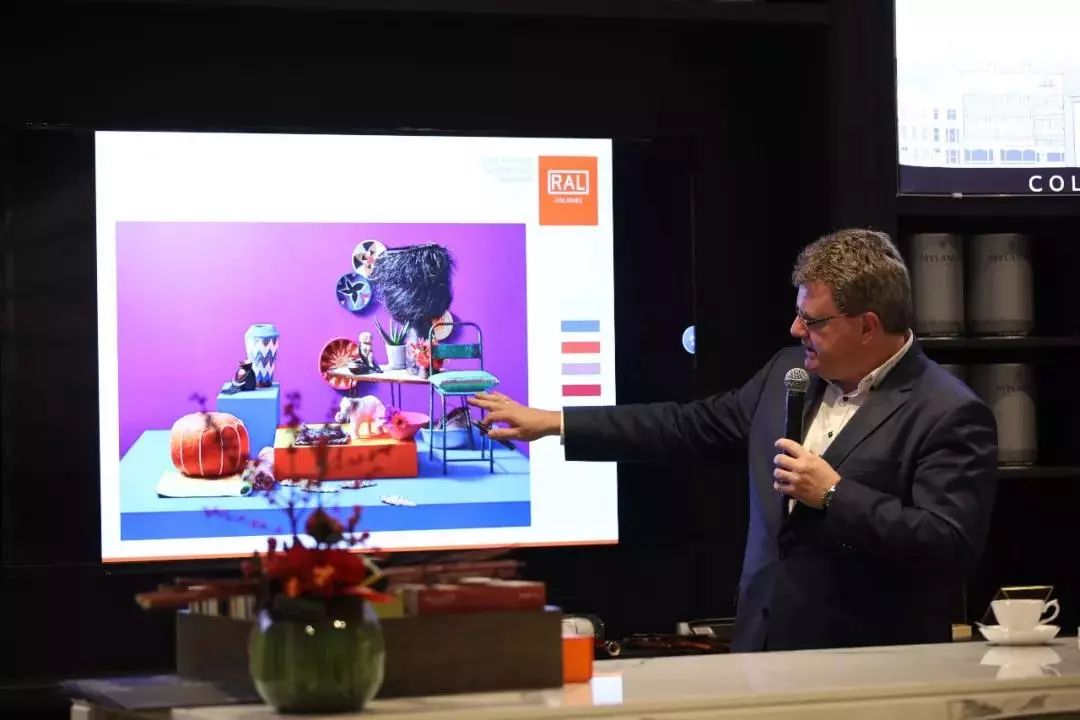 本次活动特地邀请到劳尔色彩和劳尔学院的全球负责人、德国色彩协会颜色标准化和国际化负责人马库斯先生(Markus Frentrop),进行“麦兰德RAL劳尔流行色彩发布”的演讲与展示。