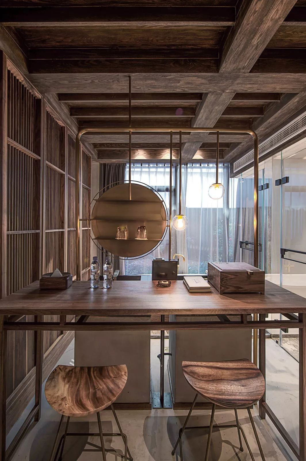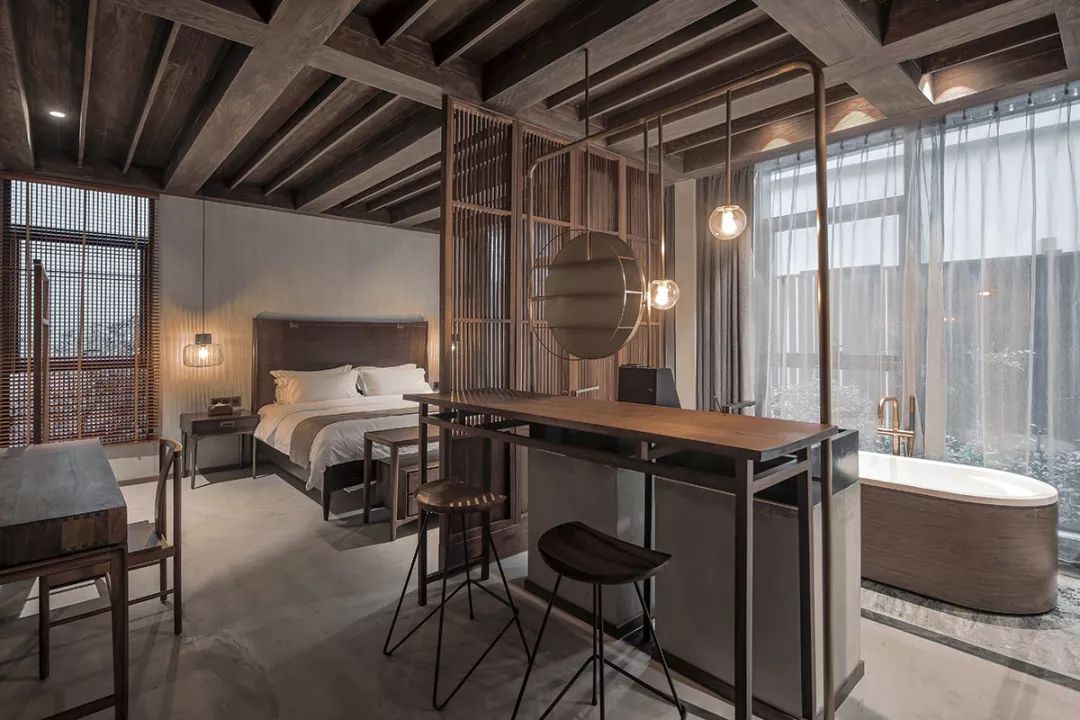 房间“淳”主基调是新中式风格,因其质朴敦厚而得名“淳”,房间里大大的玻璃落地窗,让你安静地看这个绿色的小世界,不去打扰那院中的生灵,毗邻闹市却又大隐于市。