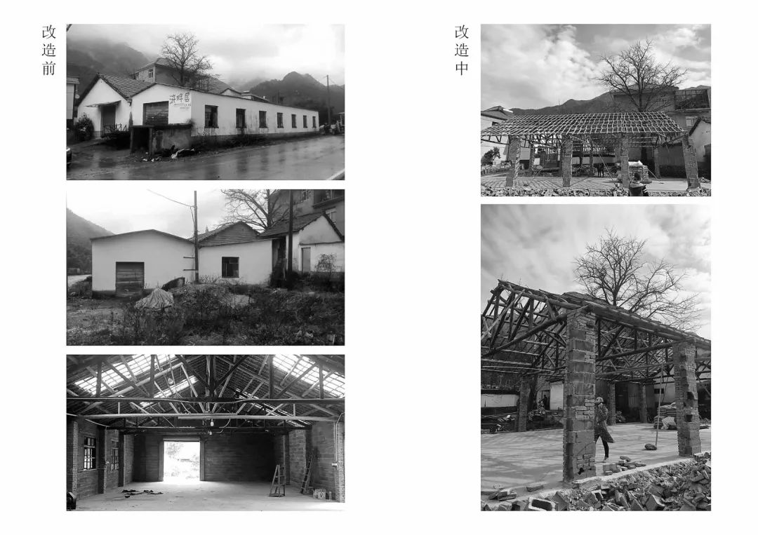 地块位于村主干道边,紧邻溪水,现状为废弃厂房,长约25米,宽16米,三面紧邻农居,一面隔路临溪水。建筑原始状态很差,屋面瓦、墙体基本报废,只有几根红砖柱和木屋架尚能加固使用。