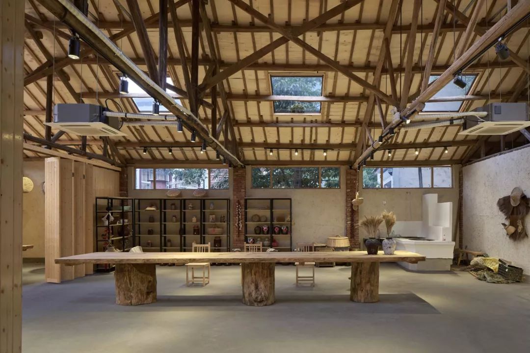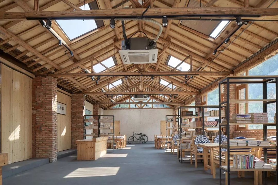 顶部每跨设置一个天窗,除了满足采光需要,更引入周边的山景,做为乡村记忆馆的核心功能空间,在这里能感受到自然山水和传统手艺,现代生活的融合。