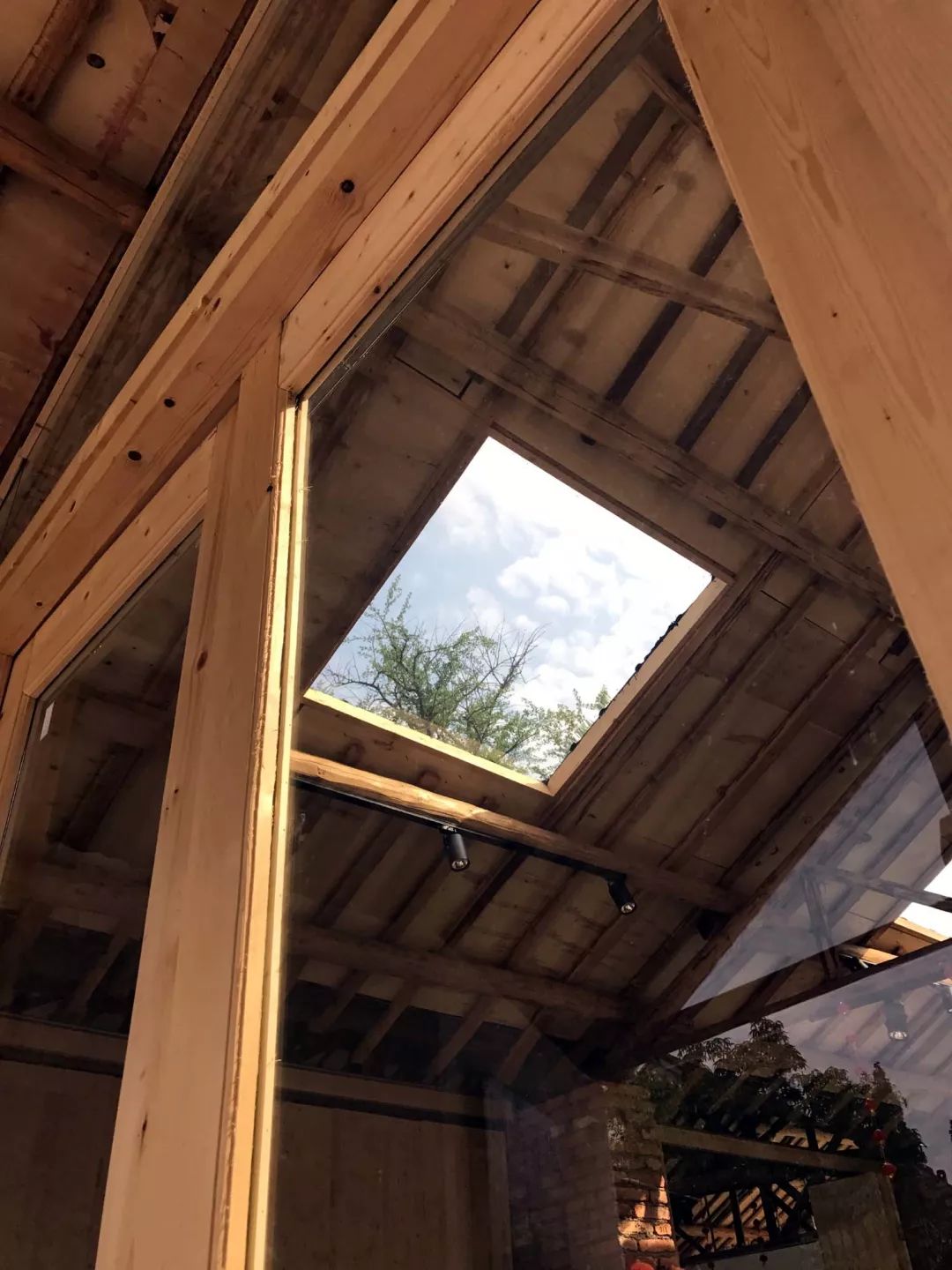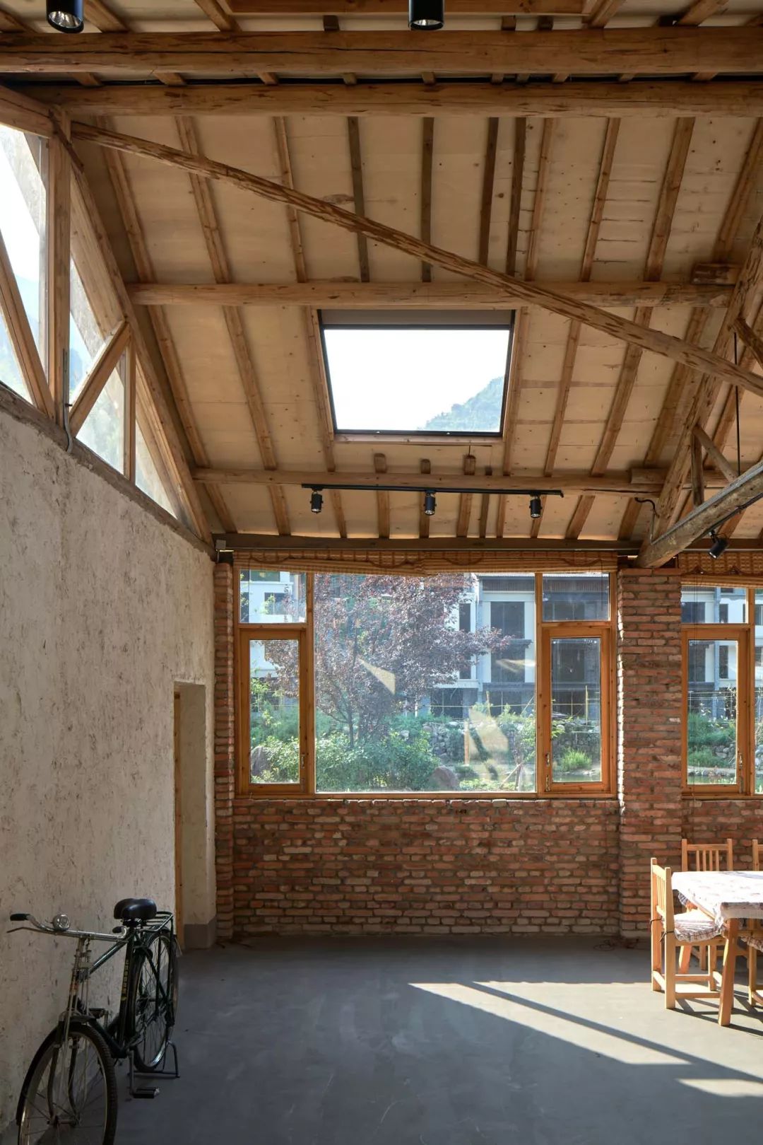 我们在大空间中尽量多的设置天窗,这样使得风景最大化的映入室内,也尽可能减少对周边民宅的干扰。