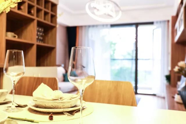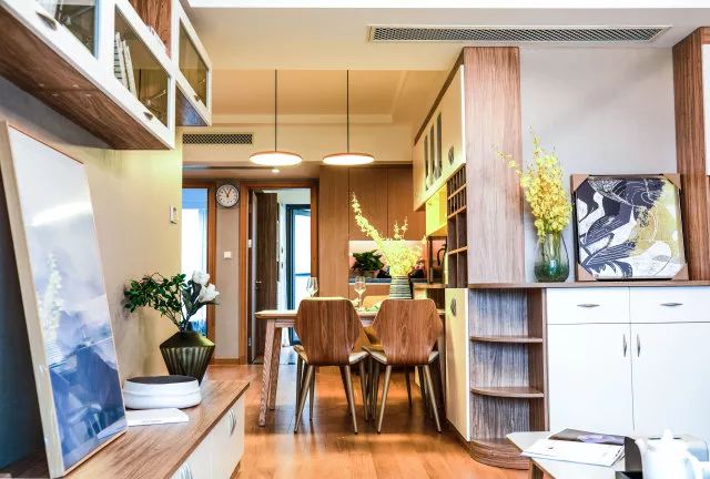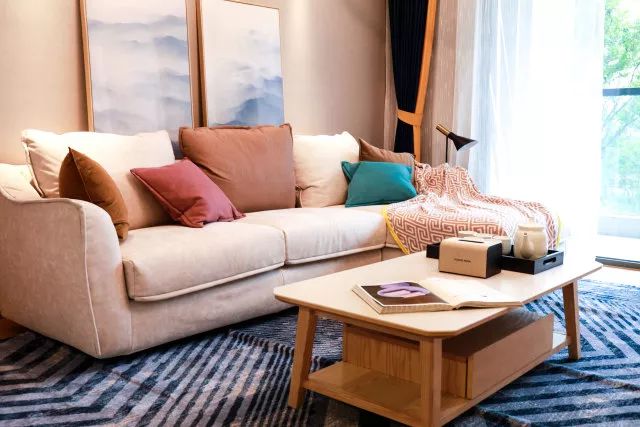 米色与木色汇聚到客厅的一刹那,时光仿佛