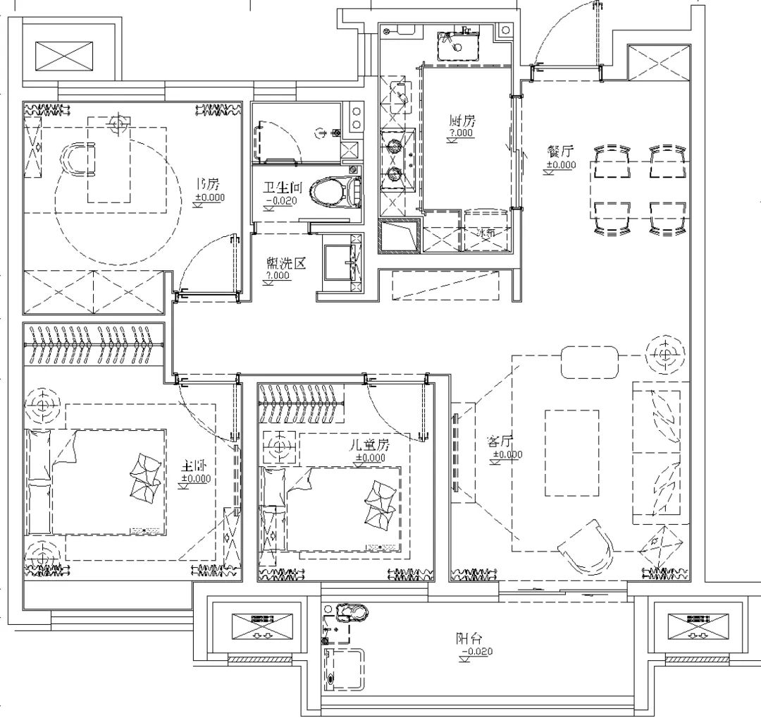 关注微信公众号:jiaxhx,学习更多小户型装修知识技巧齐家小菜今天分享的是一套建筑面积89平米的现代风小户型三居室案例,房子整体的格局比较端正,三间卧室和客厅、餐厅、厨房、卫生间都划分在了不同的空间内,设计师以时尚大方的现代风为基础,加入了精致的软装,营造出了优雅、有气质的居住氛围。平面布置图客