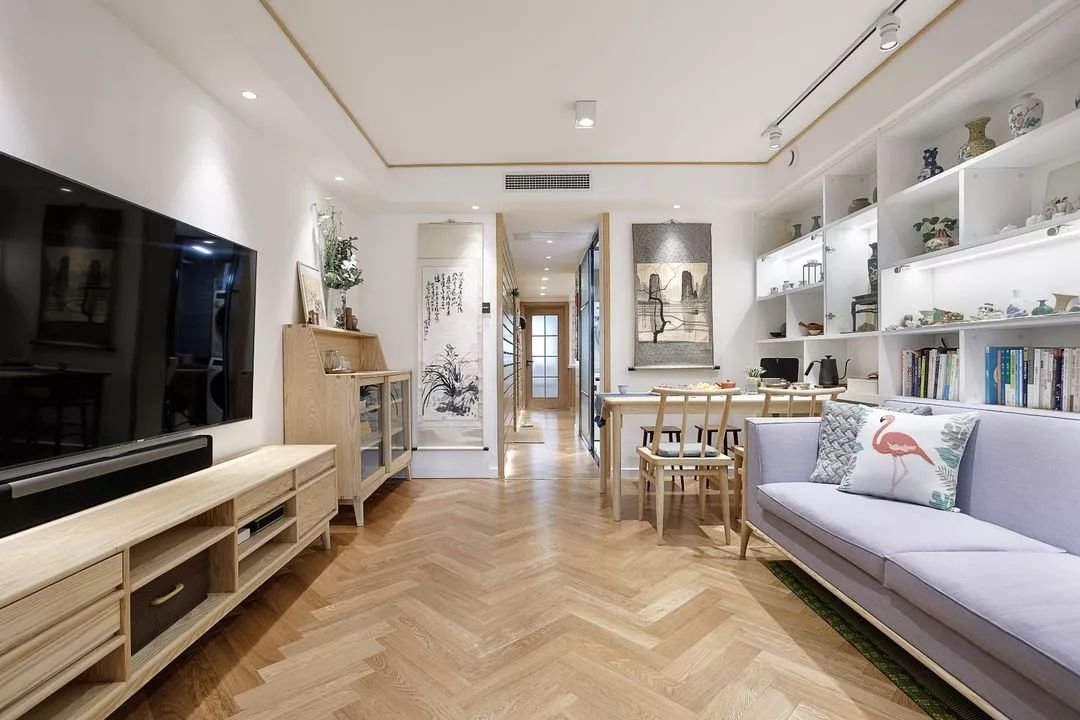 齐家小菜今天分享的是一套建筑面积65平米的简约风小户型二居室案例,房子的格局是长条形的,两间卧室位于南北两侧,中间是厨房、玄关走廊、卫生间和客餐厅空间,虽然房子的采光不好,但整体的设计却非常的明亮和温馨,让人羡慕不已。