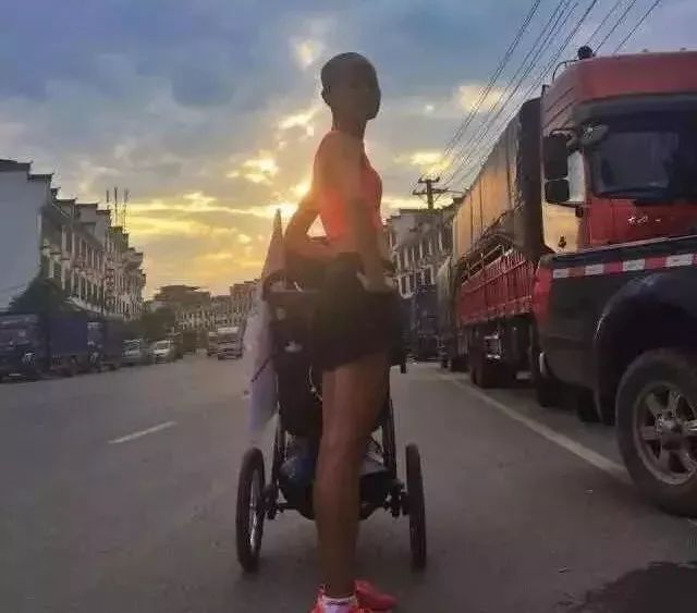 带着小推车,一路跑着
