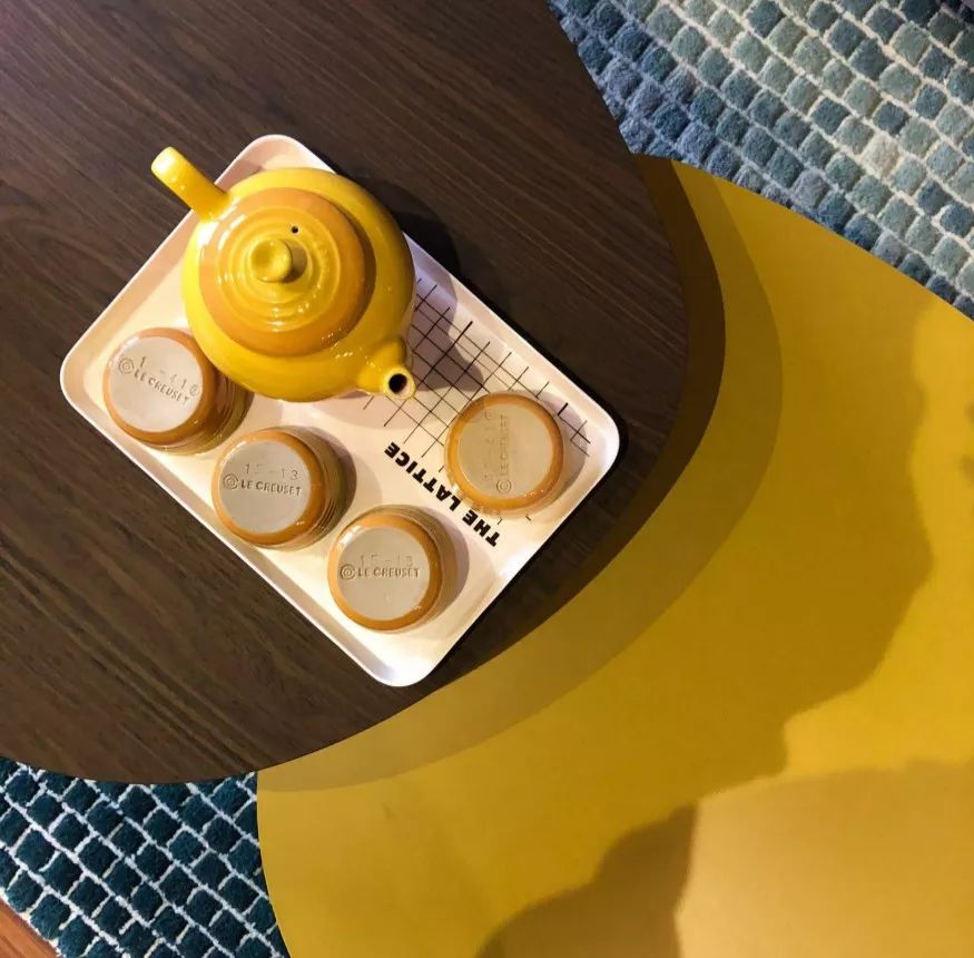 明黄色的茶几茶壶和抱枕