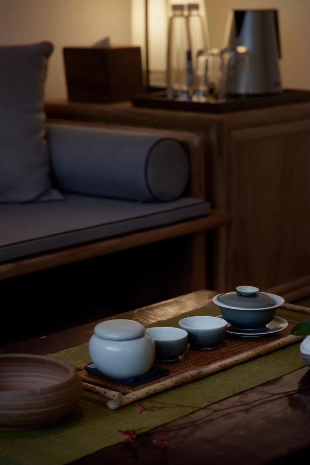成套的杯盏茶具,带着和风禅意的插花……