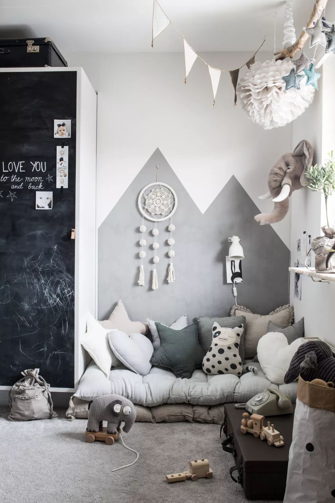 特别是在简洁风格的儿童房内,几何色块的加入会让整个空间立马丰盈起来,而且变化的图案造型更能抓住孩子喜欢趣味事物的心理。