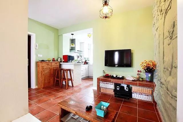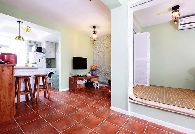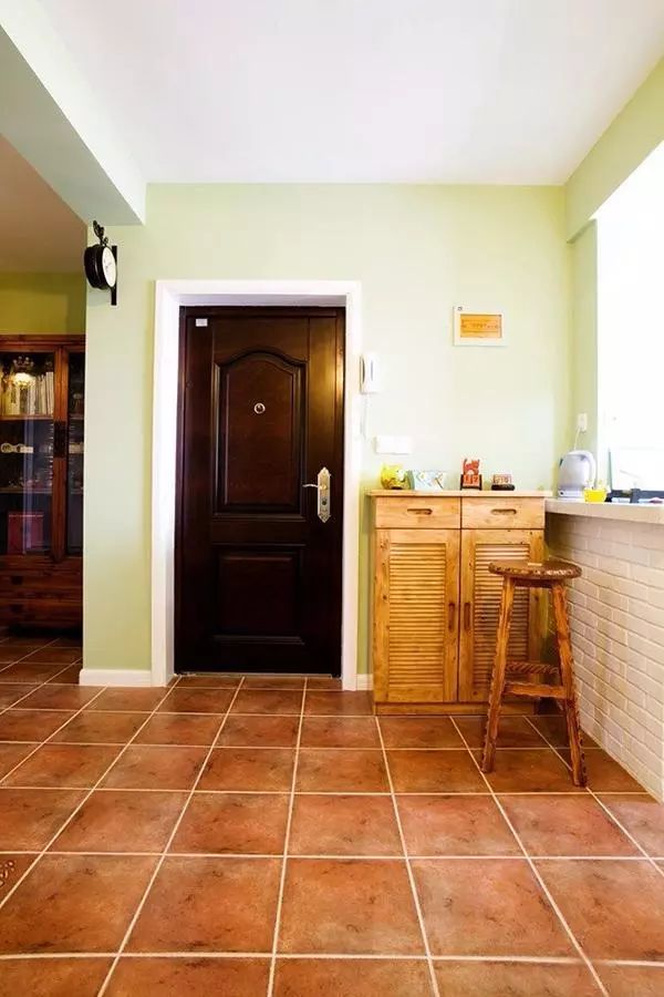 进门的玄关安了一个很小的鞋柜,地板就是简单的瓷砖,贵的也买不起