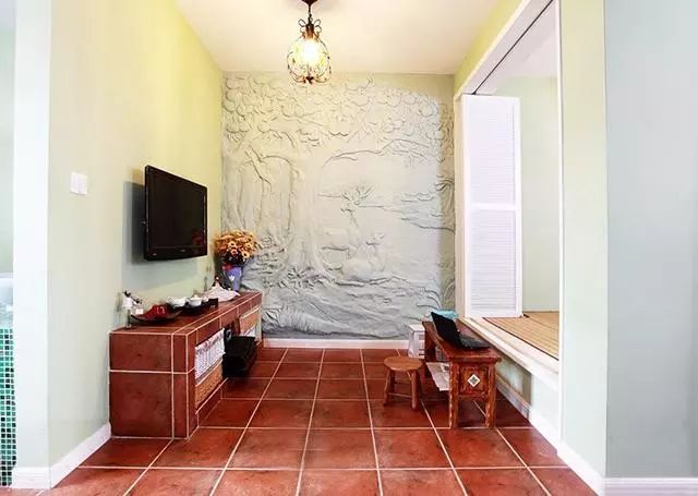 侧面的墙上做了一个大工程,浮雕一样的装饰
