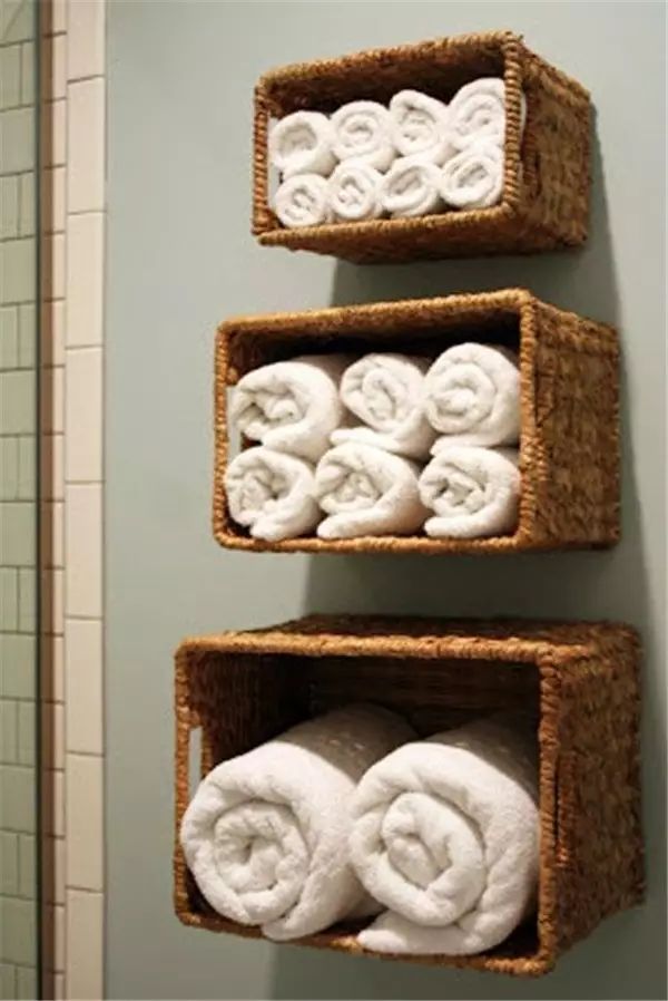 3. 通常情况下,编织篮都是平放在地上,或是桌子上,但是卫浴间空间有限,所以聪明的人都是这样做的——