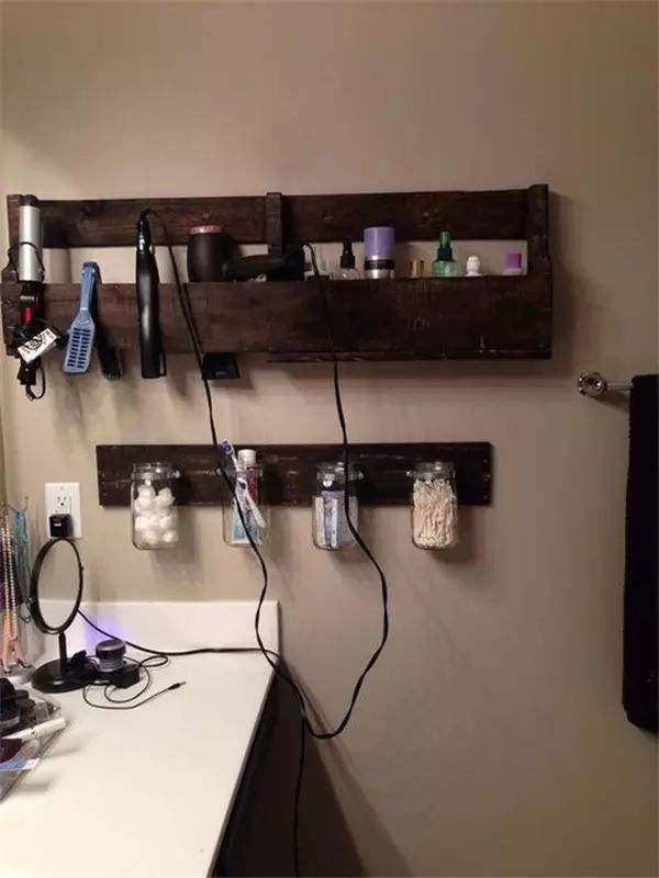 1. 把几个废弃的水果箱洗洗干净晒干,喷涂上油漆,组合到一起,就成了卫浴间里实用的置物架。