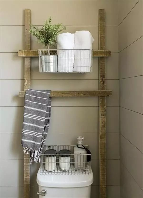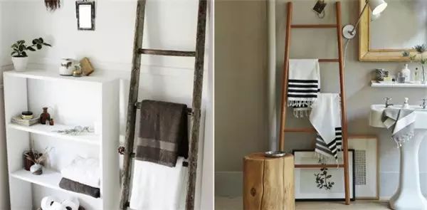 9. 家里废弃的梯子,摆到卫浴间里,绝对是一件收纳神器。