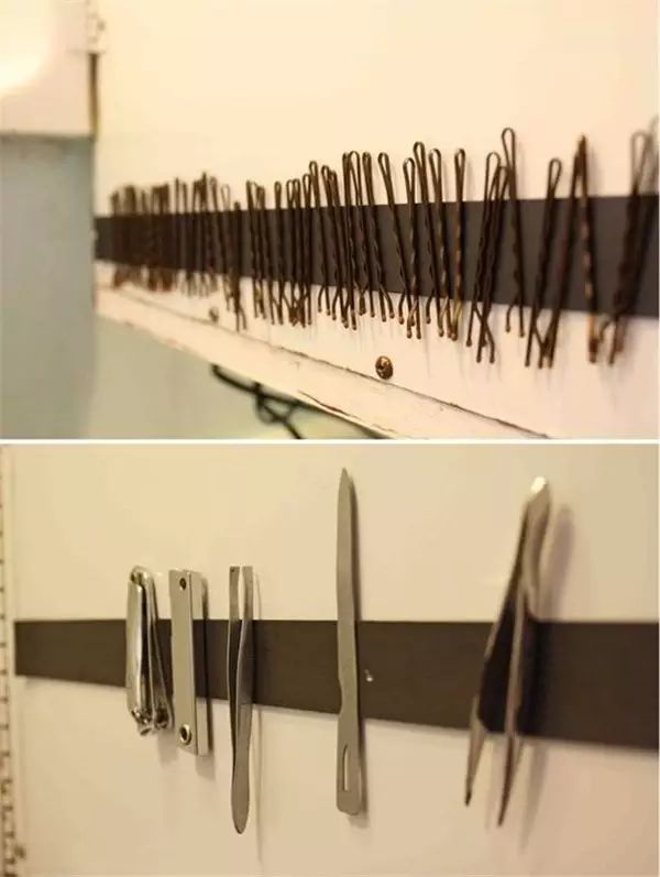 8. 如果你有很多铁制小物,那么一定要在墙上安一块磁条。