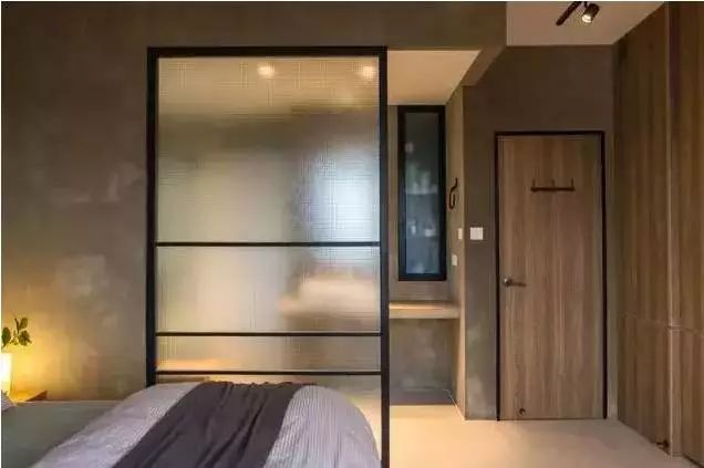 ▲磨砂玻璃隔断门,相对于透明的玻璃隔断门可以一定程度上保护主人的隐私,同时又不影响采光效果,有种若隐若现的朦胧美。