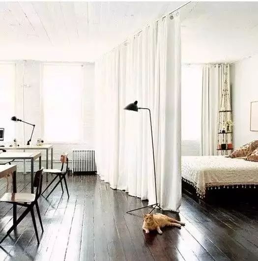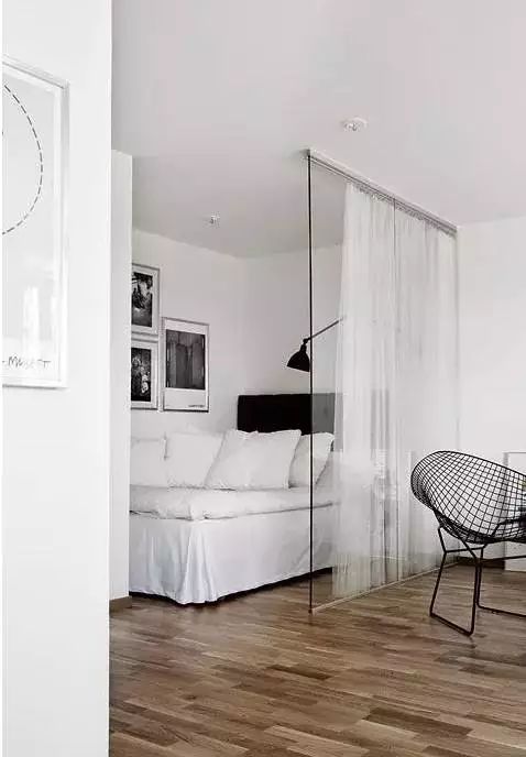 关注微信公众号:jia-sn,365天无休,全网搜罗,装修美图、案例、知识每天更新!点击了解更多装修知识和案例!点击上方 “室内装修设计精选” → 点击右上角“...” → 点选“置顶公众号 ”在现在家装中很多人卧室都不选择平开门做隔断了,而是选择更加灵活、有创意的隔断方法,今天给大家介绍几种卧