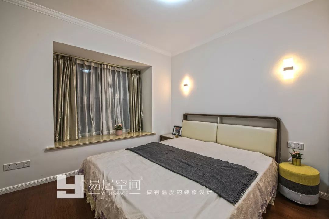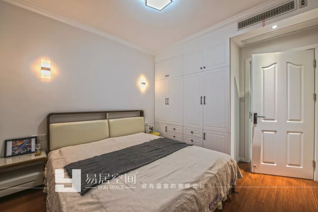 主卧的设计延续了客厅的基调,简单静谧。现场打造的衣柜收纳性较强。