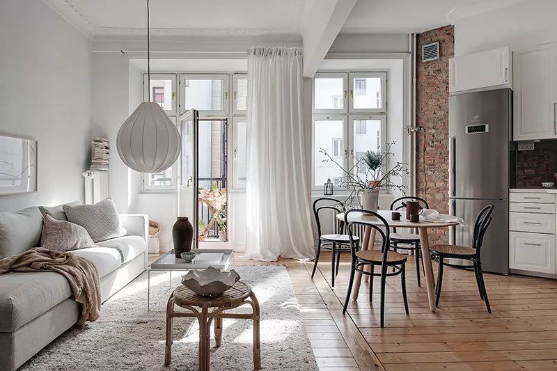 微信又改版了,不想错过我们的内容?1、点击上方“室优嘉兰”2、在账号页,点击右上角的“...”3、在弹出菜单中,选择“设为星标”ヽ(*^ー^)人(^ー^*)ノ这样就不会找不到我们啦▲ 客厅//这间瑞典公寓是小型公寓(室内面积仅53平方米)的理想布局。起居区与厨房合并为一个开放空间 - 这里宽敞明亮