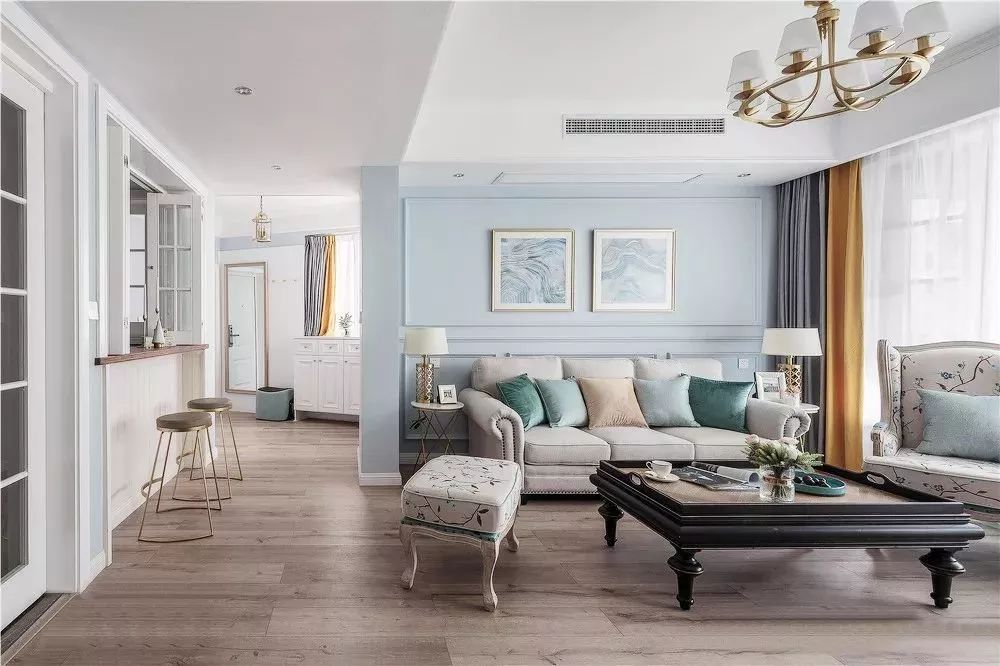 关注微信公众号:jia-fszx,每天和您分享软装搭配技巧、各种风格户型的装修案例、搭配设计知识等!房屋资料面积:100㎡户型:3室2厅1卫风格:美式美式风格,像是一首浪漫的诗,激发内心探求自由生活的渴望,带来的不仅是生活方式的解读,也是现实生活的生动呈现。▲ 入户门厅通往客厅的空间呈不规则,设计