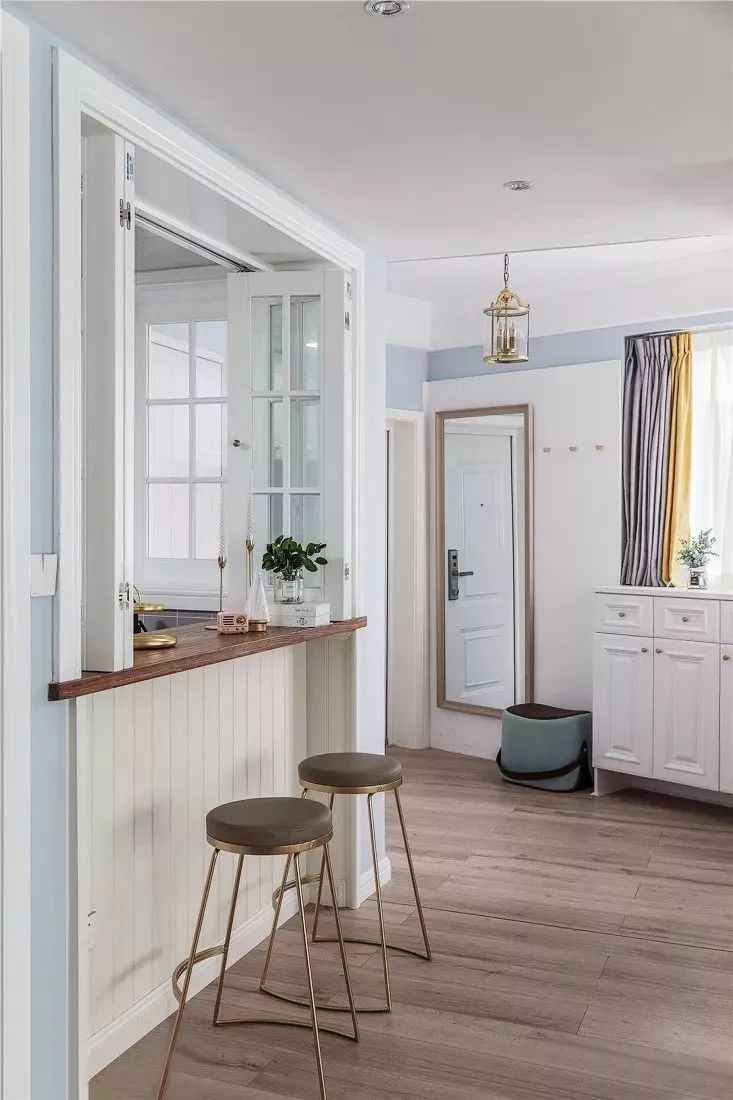 ▲客厅过道过长,厨房吧台设计将过道空间利用起来,使空间更为灵活,利用率更高。