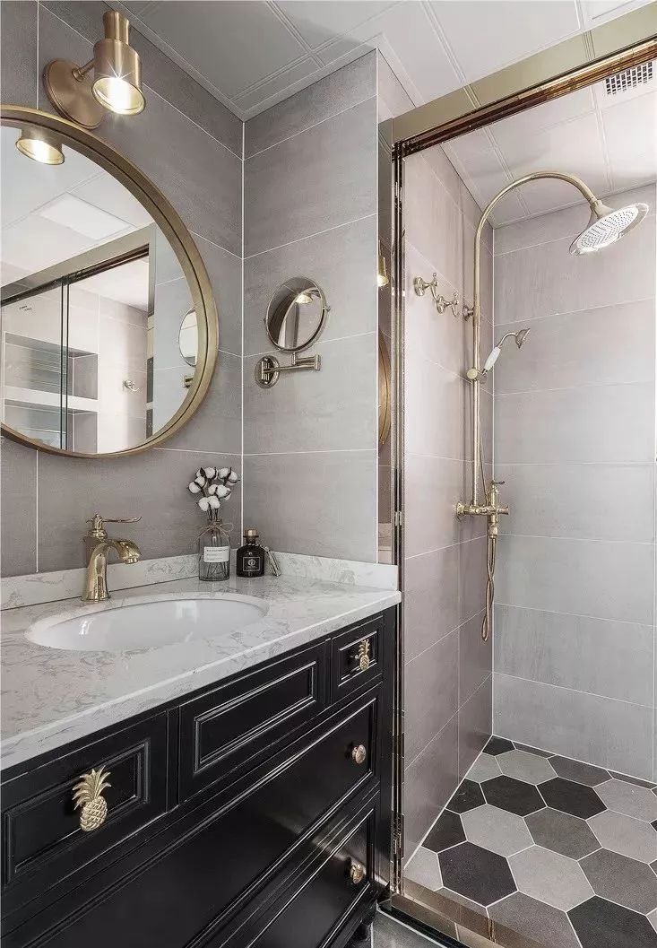 ▲卫生间选用黑白金灰四种色调进行搭配,空间感层次分明且出奇的协调,带来满满的高级质感。