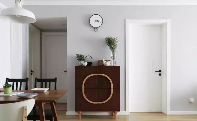 斗柜用于收纳和装饰,特意挑选了深色款的,刚好和墙面形成对比,增强空间感,也不会显得太过单调。