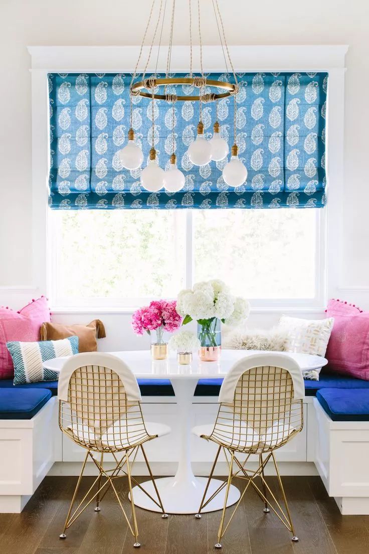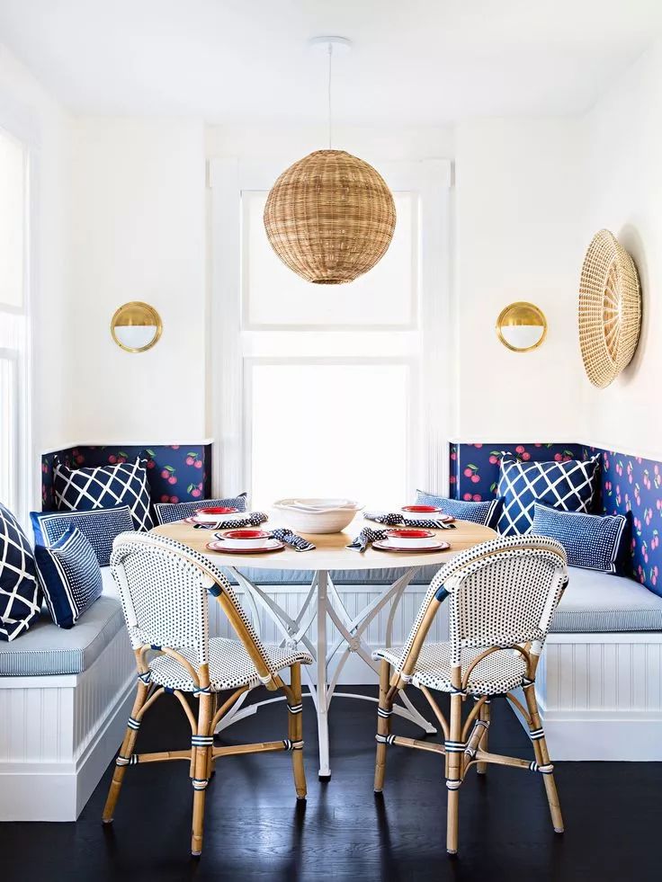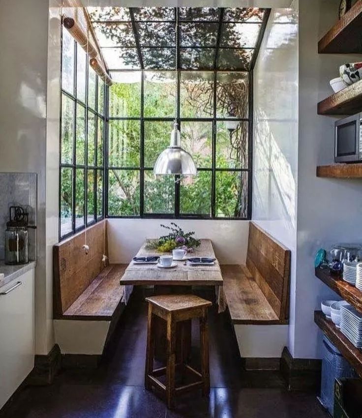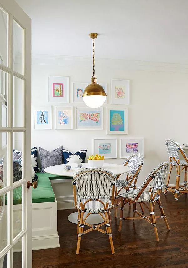 这种卡座依墙而设,是装修中最为常见的形式,直线型结构既简单又节省空间。搭配座椅使用,相对来说比较灵活。所以,适合大部分家庭。