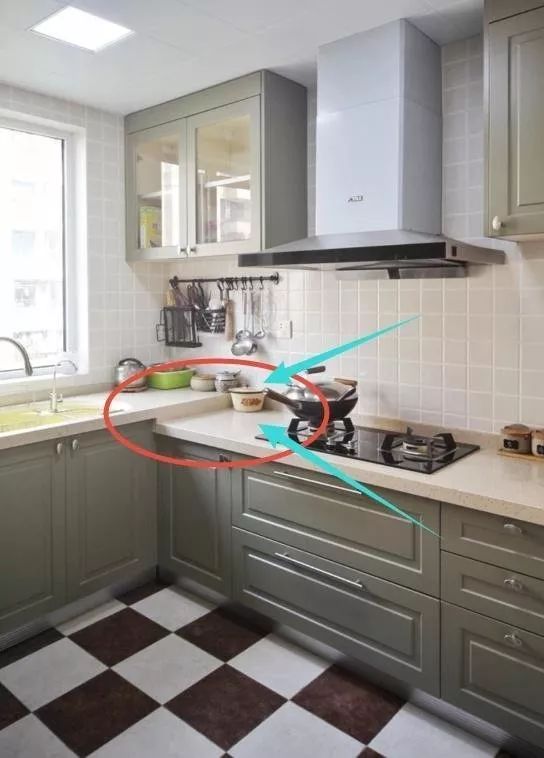我家最值得一晒的就是厨房了,当初厨房这里做了个“小错位”!可以说实用极了,在这里也结实一下为何这么做,我们的水槽台面是比炒菜台面高6cm的,别小看这短短的一个小错位,其实有大用途。洗菜的时候就不要弯腰太狠了,这样人的身体也舒服一些。