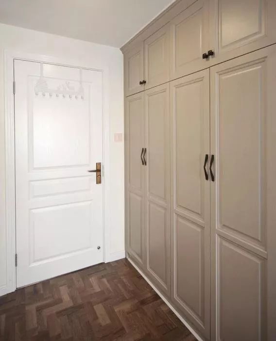 目前备孕中,暂时没有小孩,所以儿童房只做了衣柜还没买床,墙面也是个刷大白,等以后看是男宝还是女宝再添置,就晒晒儿童房的柜子吧,在房门口。