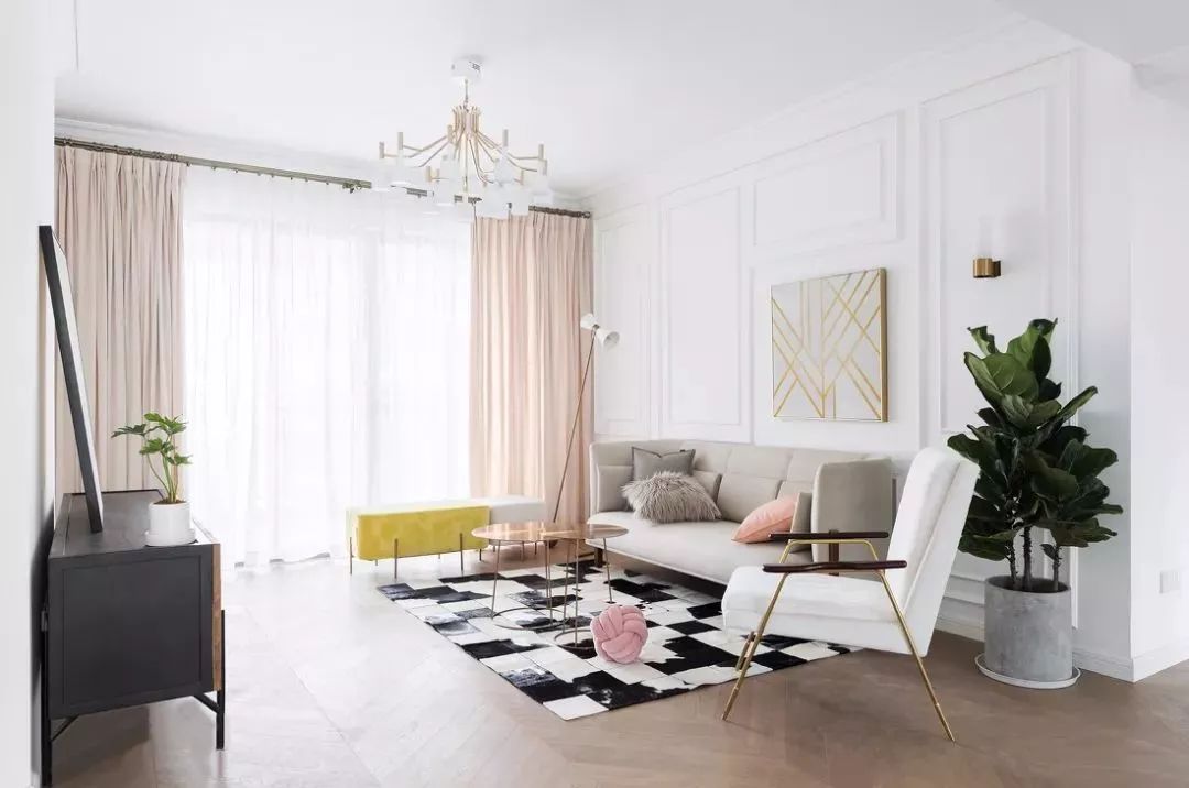关注微信公众号:jiasjmt 一起学习更多装修技巧与案例!想要免费设计和了解更多装修知识,就点我吧!【 面积:116㎡ 户型:三居室 风格:现代轻奢简欧风 】轴线对称的空间布局,柔和的线条,雅致的布艺窗帘和沙发,无一不在诉说着浪漫的情怀,将优雅的曲调尽收眼底。客厅墙面白漆为底,线条为辅,即使