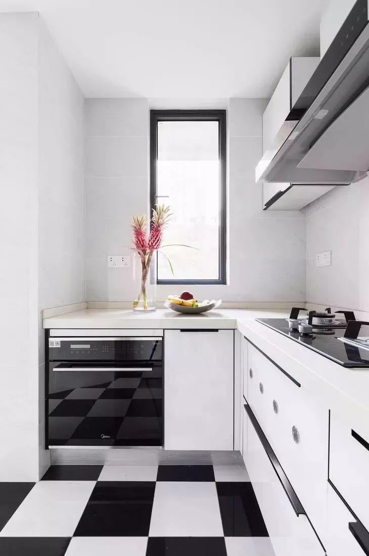 厨房采光良好,操作台增大,黑白相交的色彩也让空间多了几分时尚元素。