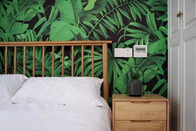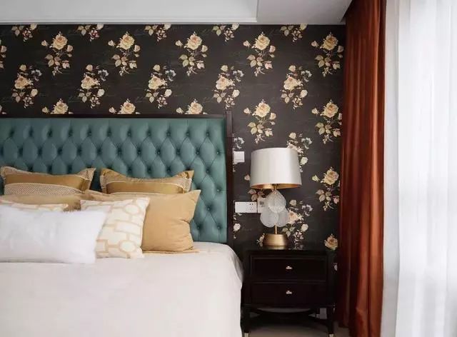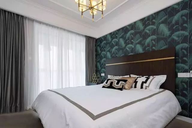 次卧的床头背景墙同样也是用了壁纸进行装饰,再配上素雅的软装,打造出一个既时尚又典雅的空间!