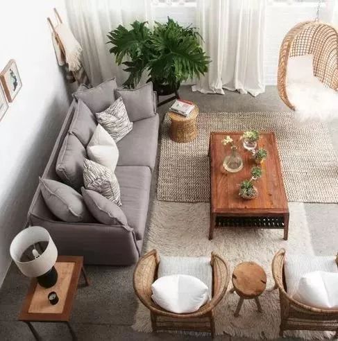 如果是沙发+沙发椅的组合,一个小圆几放转交处,搁两本书也好,放一杯茶,一瓶花,大小恰到好处,又出气氛;