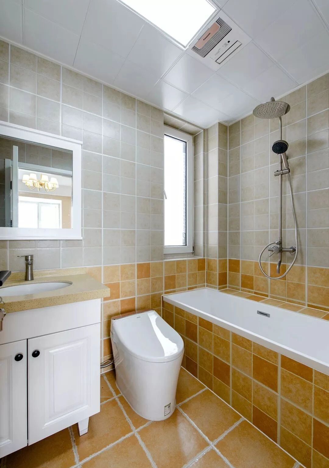 主卫比较小采光也比较差,设计师选用了暖色的瓷砖,有点美式的怀旧感,做了一个小浴缸,在劳累了一天后睡前泡个舒服的热水澡,是对生活的一种尊重。