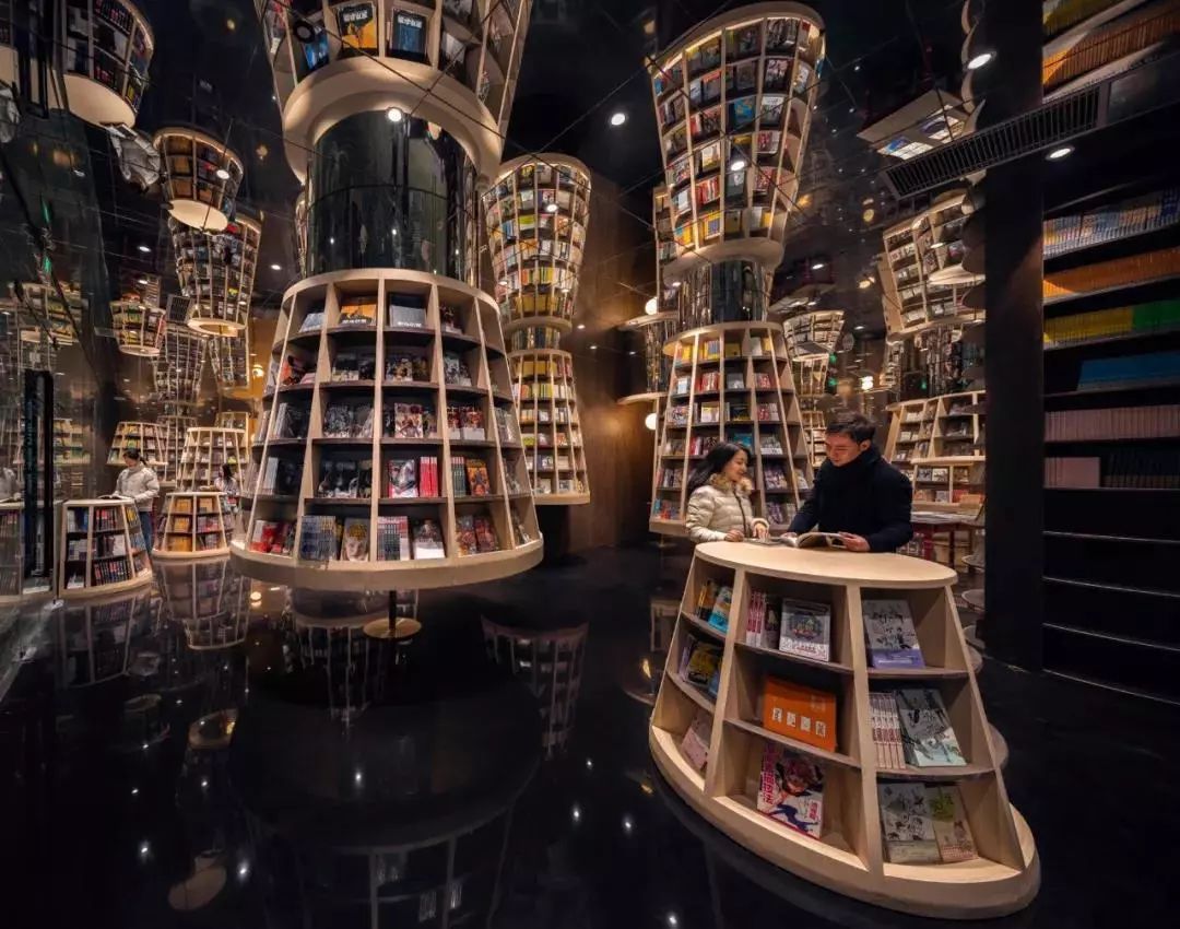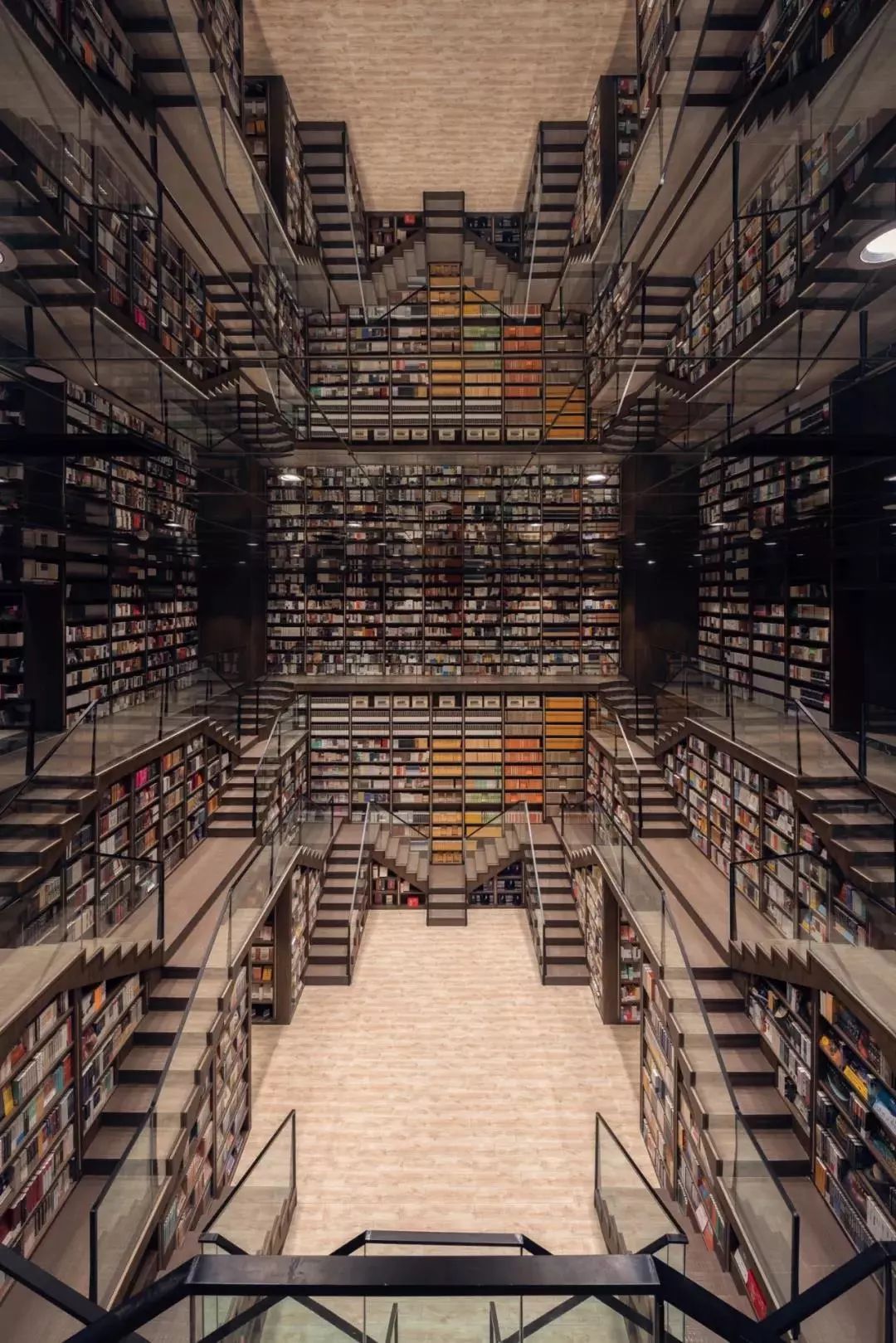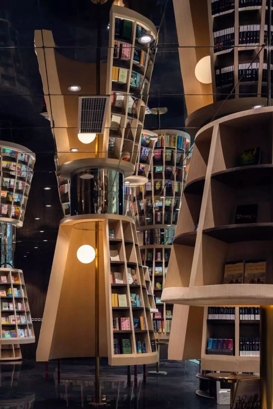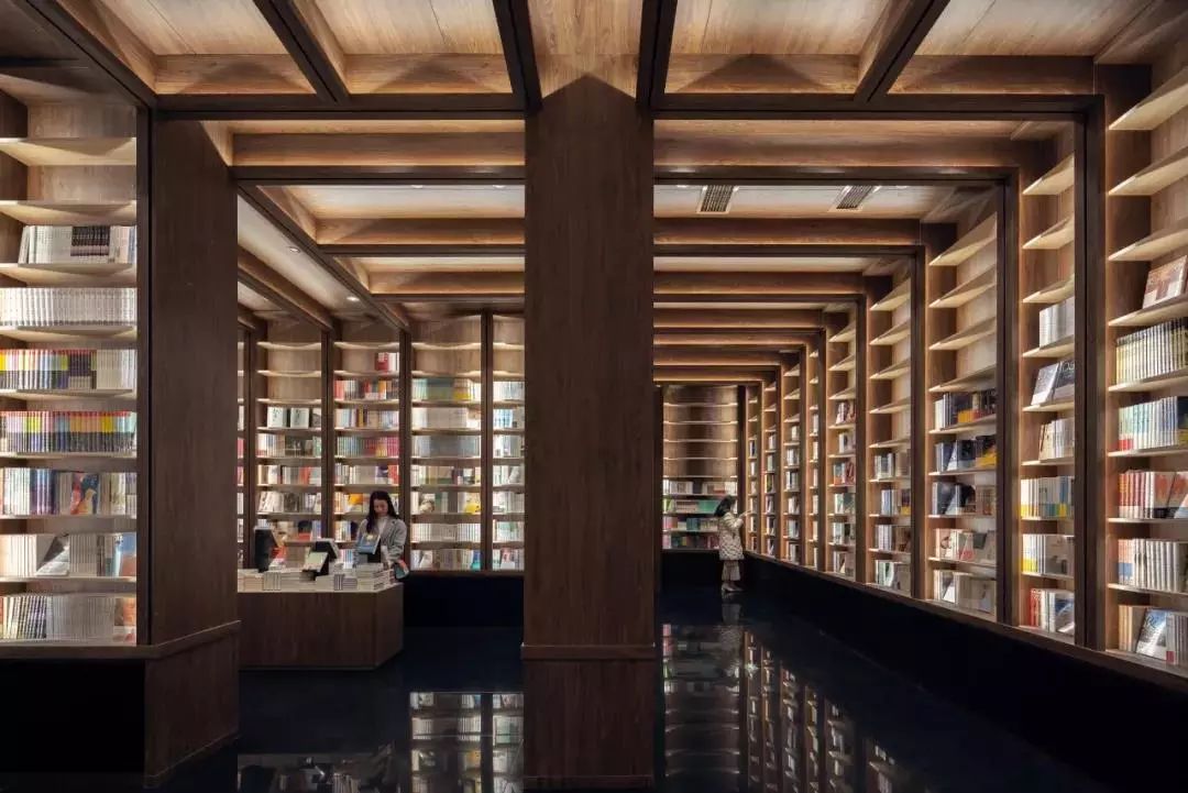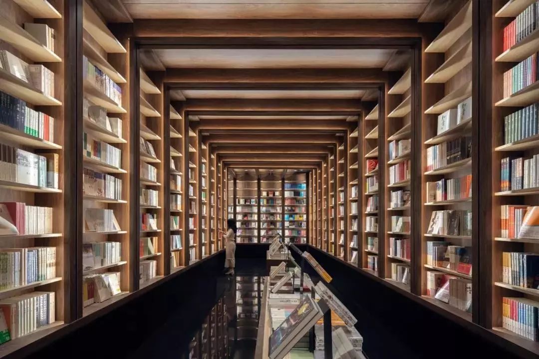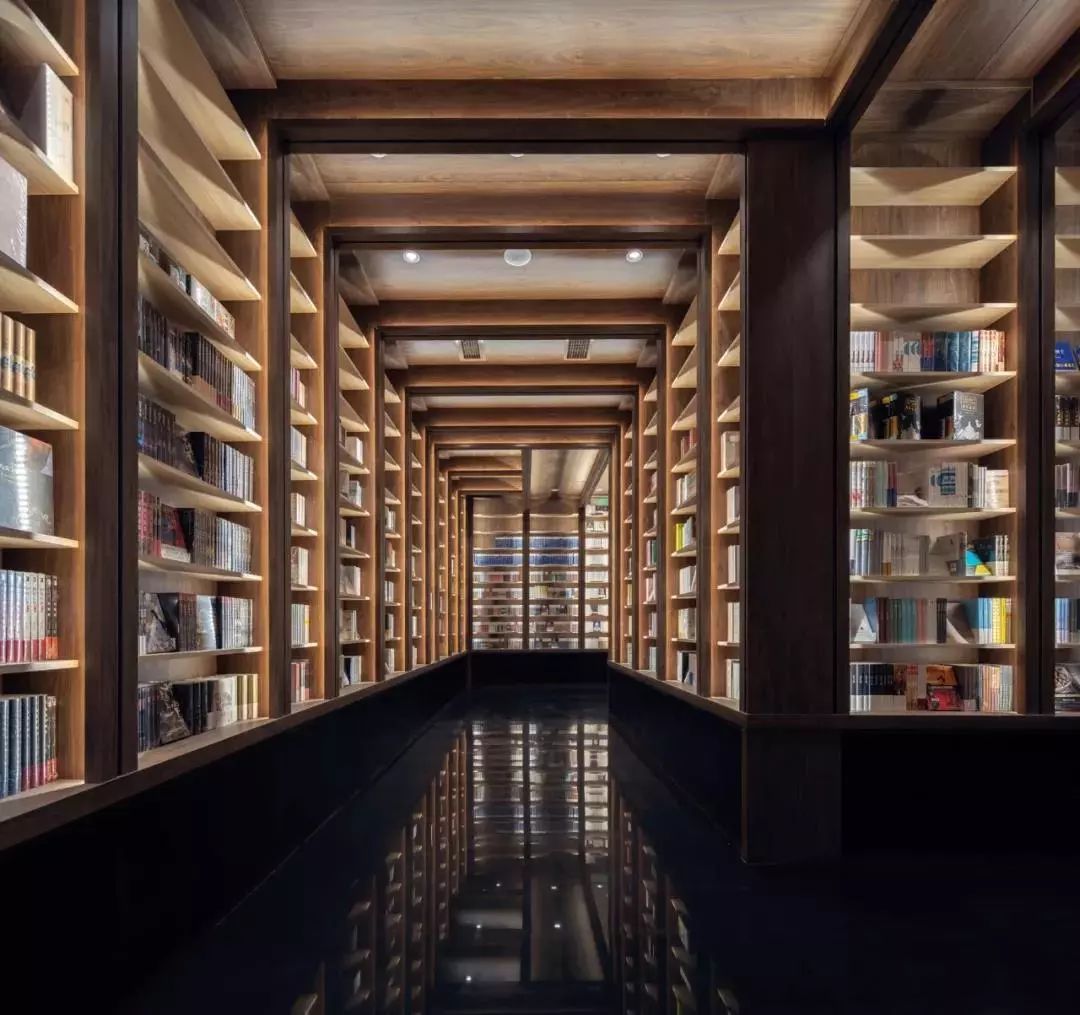 在地面反射下形成一道道“穿越书海的隧道”