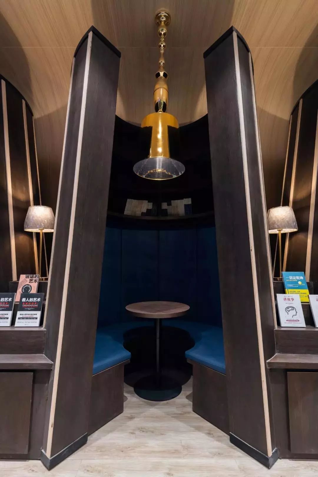 四周利用“灯罩书架”围合成了一个个私密的卡座