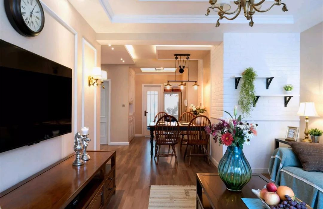 齐家小菜今天分享的是一套建筑面积76平米的小户型二居室案例,屋主选择了轻美式风格,通过暖色调的背景搭配美式风的家具,也混搭一些现代、北欧风的元素,来营造出这样一个有格调又温暖的小窝。