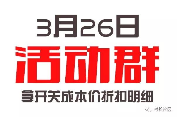4)登记后村长将邀请业主加入对应活动微信群,3.26日群内公布开关进货最终折扣明细;