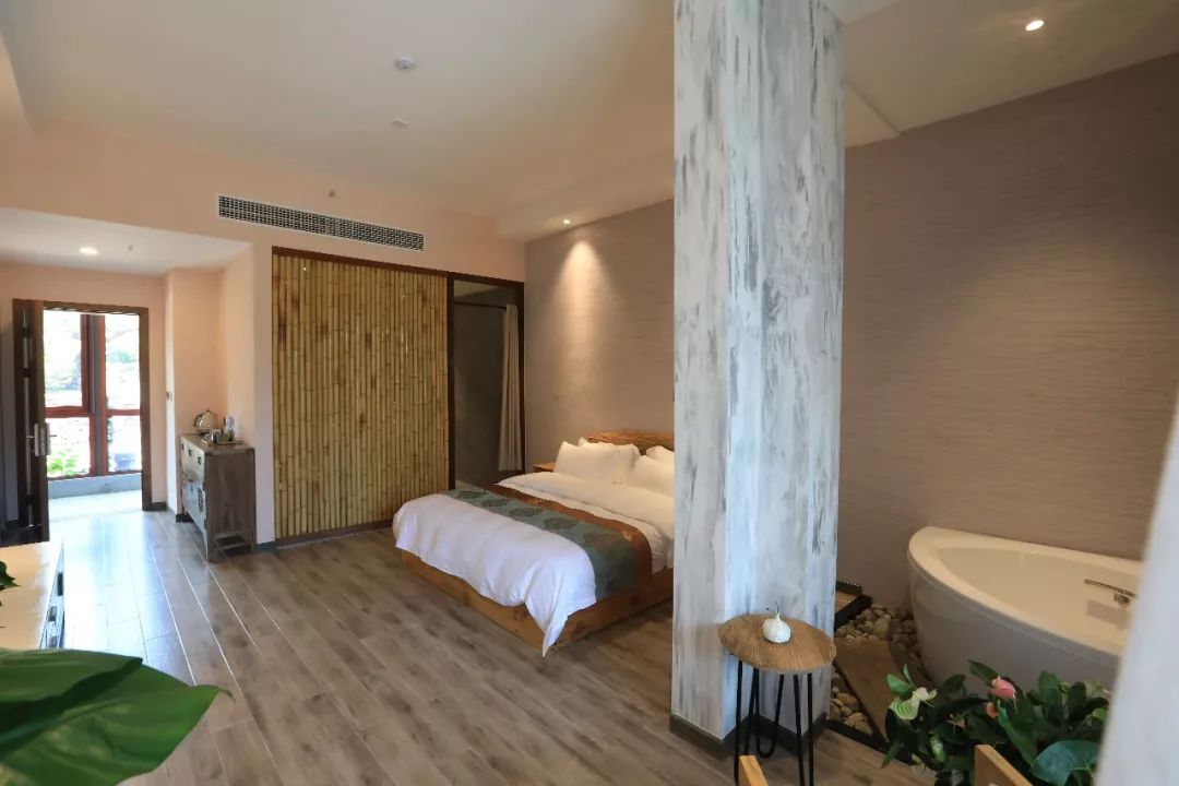 7间客房都是山景房,推开落地窗就是天然氧吧,趴在露台上享用慷慨阳光,还有一览无余的美景。为了给客人带去极致享受,印尼进口的做旧柜子、设计师椅子,五星级酒店必备金可儿床垫,洗漱套装用的是澳洲顶级品牌Appelle。