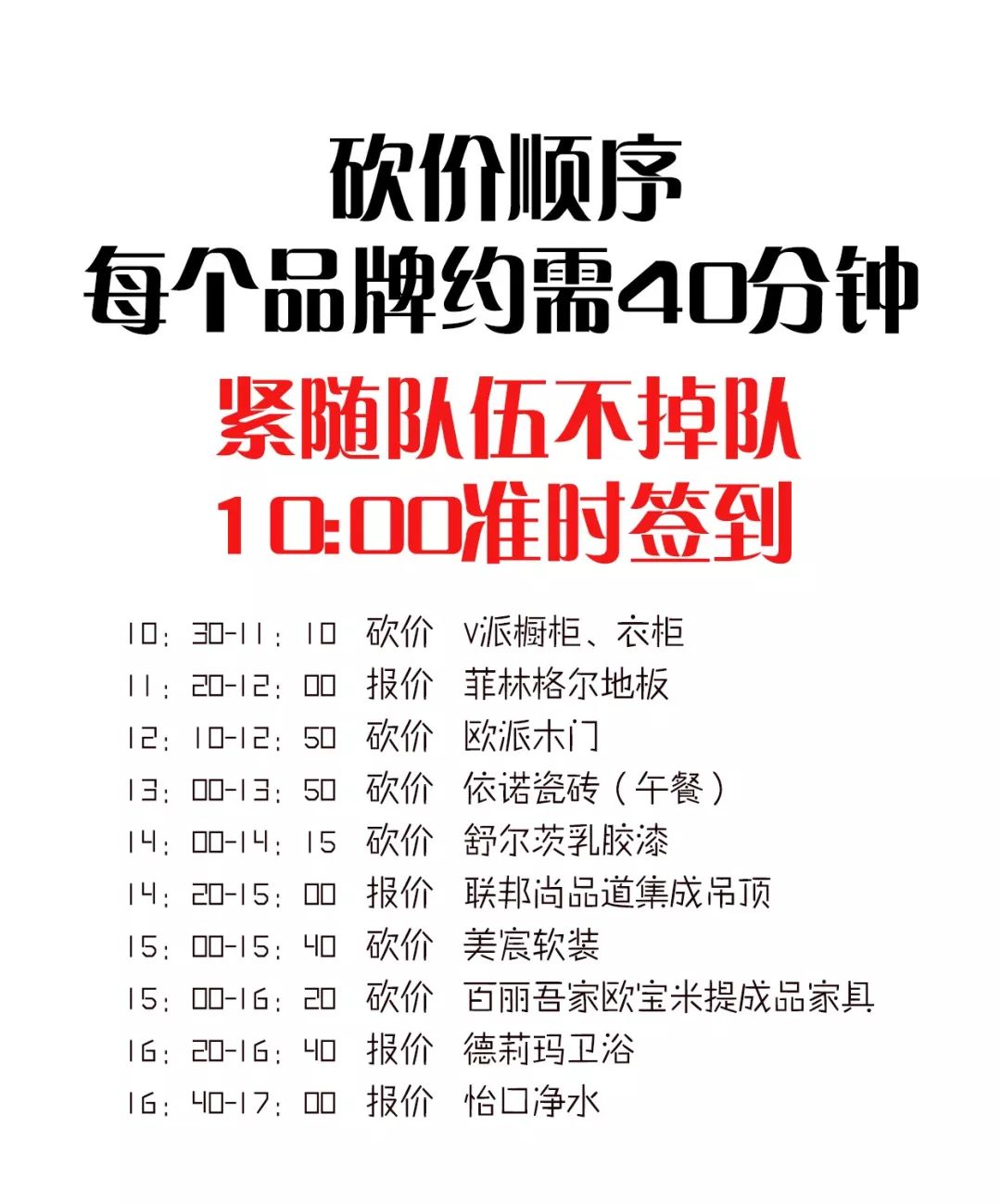 请务必于2月23日10:00到达活动现场,砍价开始之前砍价师将做现场活动讲解,迟到可能错过优惠和礼品!