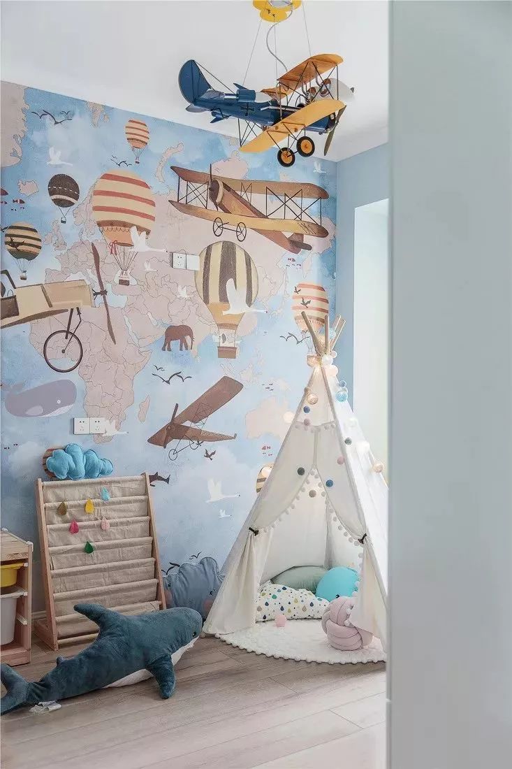 ▲儿童房同样选择了清新的蓝色调,考虑到宝宝父母的职业,所以更多的选用飞行元素来装扮空间。