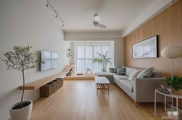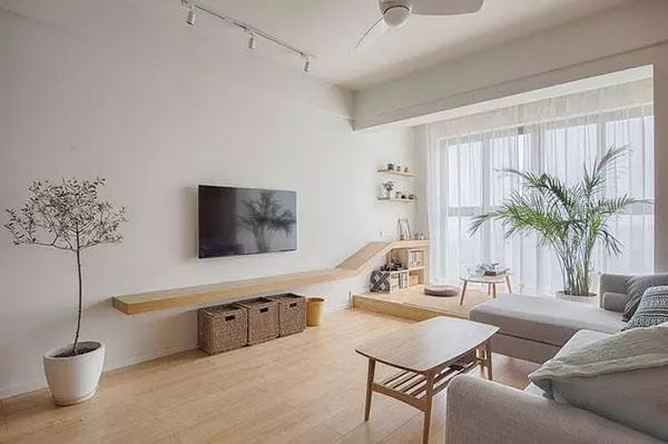 没有做吊顶,房子显得高了许多,不那么压抑,而且阳台门敲掉之后,与阳台相连,就更加宽敞空旷了。