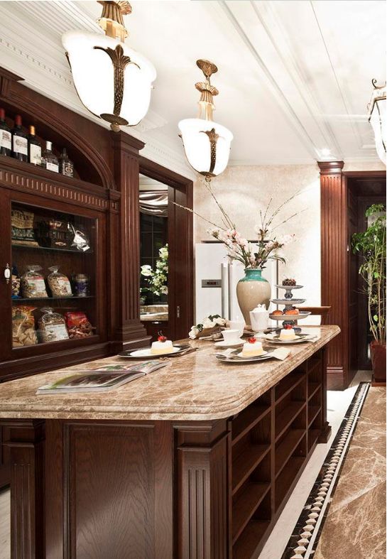 欧式家装一般主深色调,多用华丽的装饰进行家装,显示贵气与大气。这种家装可以多用彩色的大型瓷器进行装饰,富丽堂皇的同时又显示大气,彰显主人雍容气质与贵气。