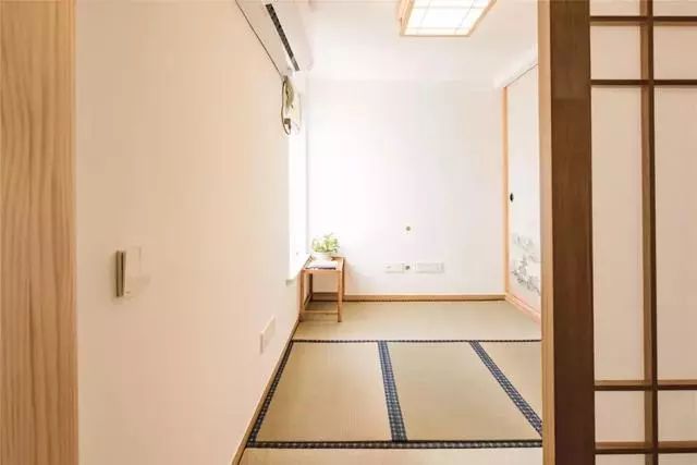 客房整个空间都被做出了榻榻米地台,铺设日式风中常见的地垫,衣柜的移门和格栅门也很有日式风的感觉,温馨又舒适。