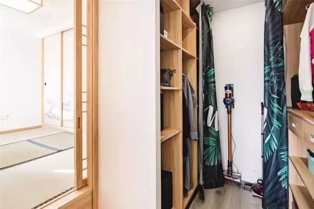 在客厅的外面还有个小小的衣帽间,用来增强家里的储物能力,也可以摆放一些零碎的杂物,可以说是把空间充分的利用了起来。