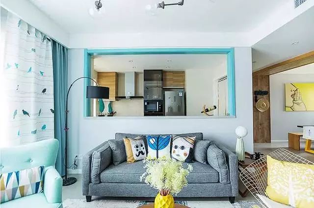 装修风格:北欧混搭△玄关处没有用多余的隔断,在一进门就可以看到餐厅和厨房,宽敞。△客厅是清爽的薄荷色,像嚼了一口让人醒神的糖,一下子让整个客厅的气氛炸了起来,而且亮度一下子就提起来了!收了!△小巧可爱的躺椅,tiffany蓝是她的最爱,跟木质茶几以及黄色几何花瓶一起打造最强视觉刺激。△餐厅挂画与餐
